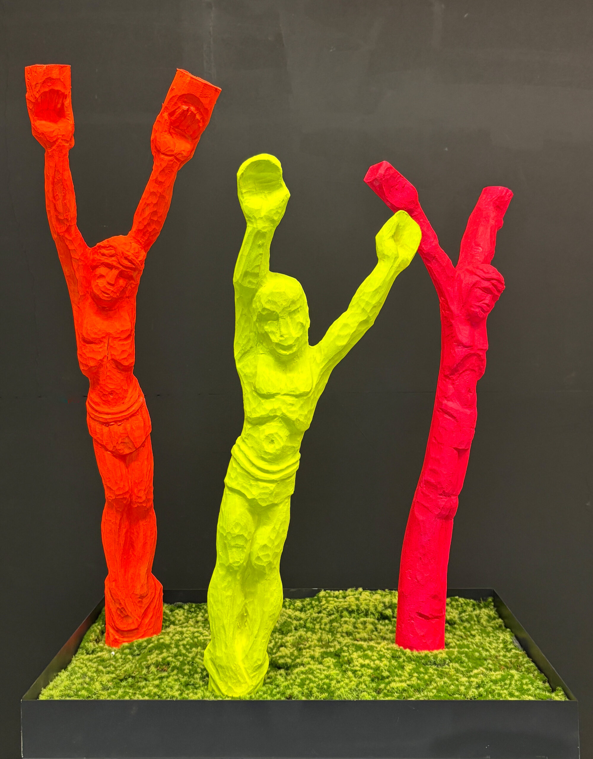 Skulpturen Darreichung | Gips Acryl neon | 20 x 20 x 30 cm Neon Gods 1 | 60 x 40 x 60 cm Neon Gods 2 | 70 x 40 x 85 cm Neon Gods 3 | 70 x 50 x 95 cm Neon Gods 4 | 100 x 60 x 120 cm Figuren aus Holz im Moosbett | Acryl neon Torso rot | Ton | 40 cm Mutter mit Kind | Ton | 46 cm Nepumuk | Holz | 120 cm Ohne Titel 5 | Draht m. Holzfigur20x 20 x 40 cm Ohne Titel 4 | Draht m. Holzfigur20 x 20 x 40 cm Ohne Titel 3 | Draht m. Holzfigur20 x 20 x 40 cm Ohne Titel 2 | Draht m. Holzfigur20 x 20 x 40 cm Ohne Titel 1 | Draht m. Holzfigur20 x 20 x 40 cm Goldrahmen mit Frauenkopf | Rahmen Schlagmetall, Kopf Gips | 26 x 26 cm Goldrahmen mit Frauenkopf | Rahmen Schlagmetall, Kopf Gips | 32 x 32 cm